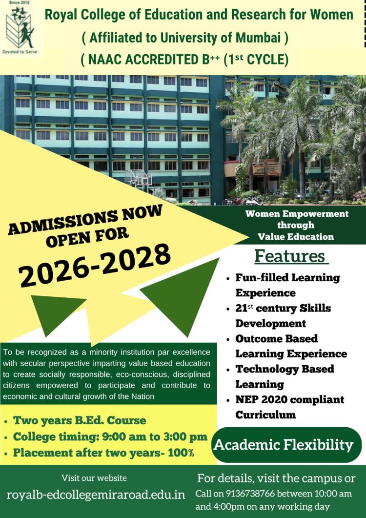 In the year 2012, the Royal College of Education and Research for Women was established with the sole motto to develop girls in our society professionally, so that they can contribute to Social, Economical and Cultural growth of Society by taking up teaching as their profession. In last 10 years, more than 600 women have successfully completed their B.Ed. Course ...